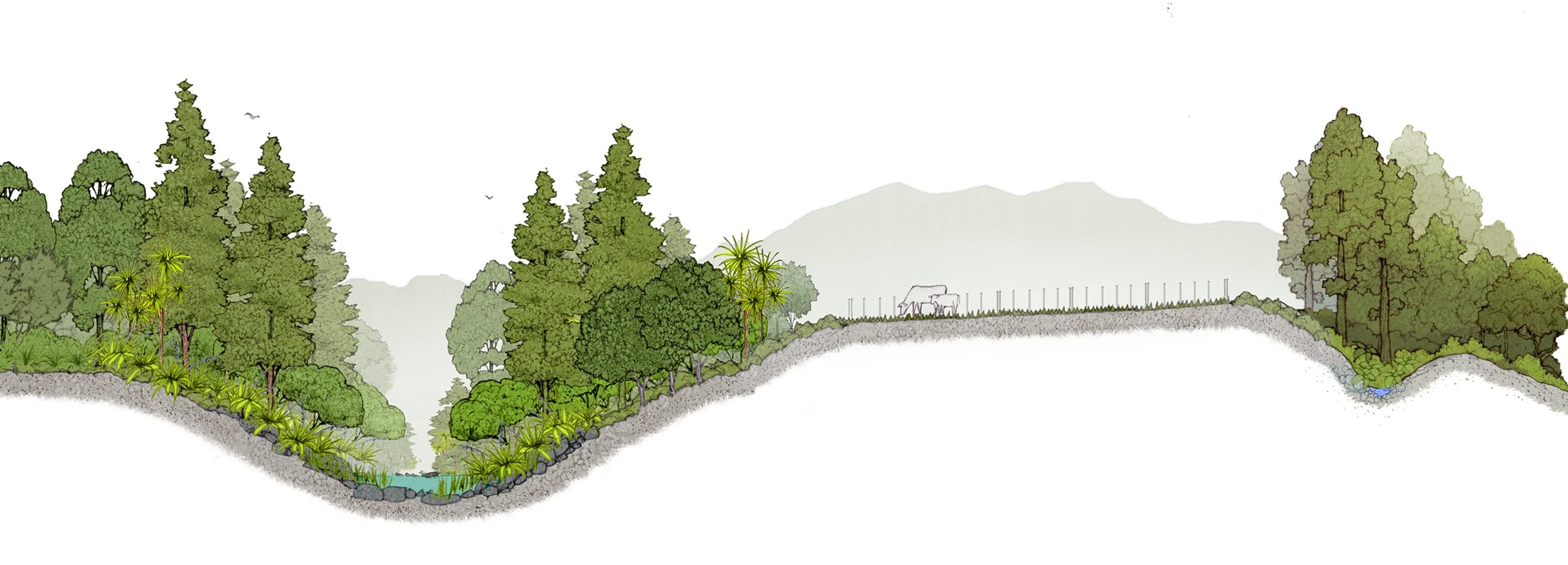 In general rural landscapes are highly modified, productive landscapes. Some have had all vestiges of naturally occurring native vegetation removed. Rural landowners recognise that productivity has an ecological cost, which can be balanced by protecting and enhancing remaining patches of bush, linking them together and by planting vulnerable land such as steep slopes.